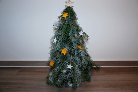 Letos jsme si s dětmi vytvořili stromeček z větví smrku, který teď zdobí naše okno. Do květináče plného kamínků jsme dali delší klacek, na který jsme ze spodu přivazovali větvičky smrku. Vrchní větve jsme připevnili pomocí tavné pistolky. Stromeček jsme nastříkali umělým sněhem ve spreji a ozdobili dvěvěnými hvězdami a hvězdami vykrojenými ze slupek od mandarinek.